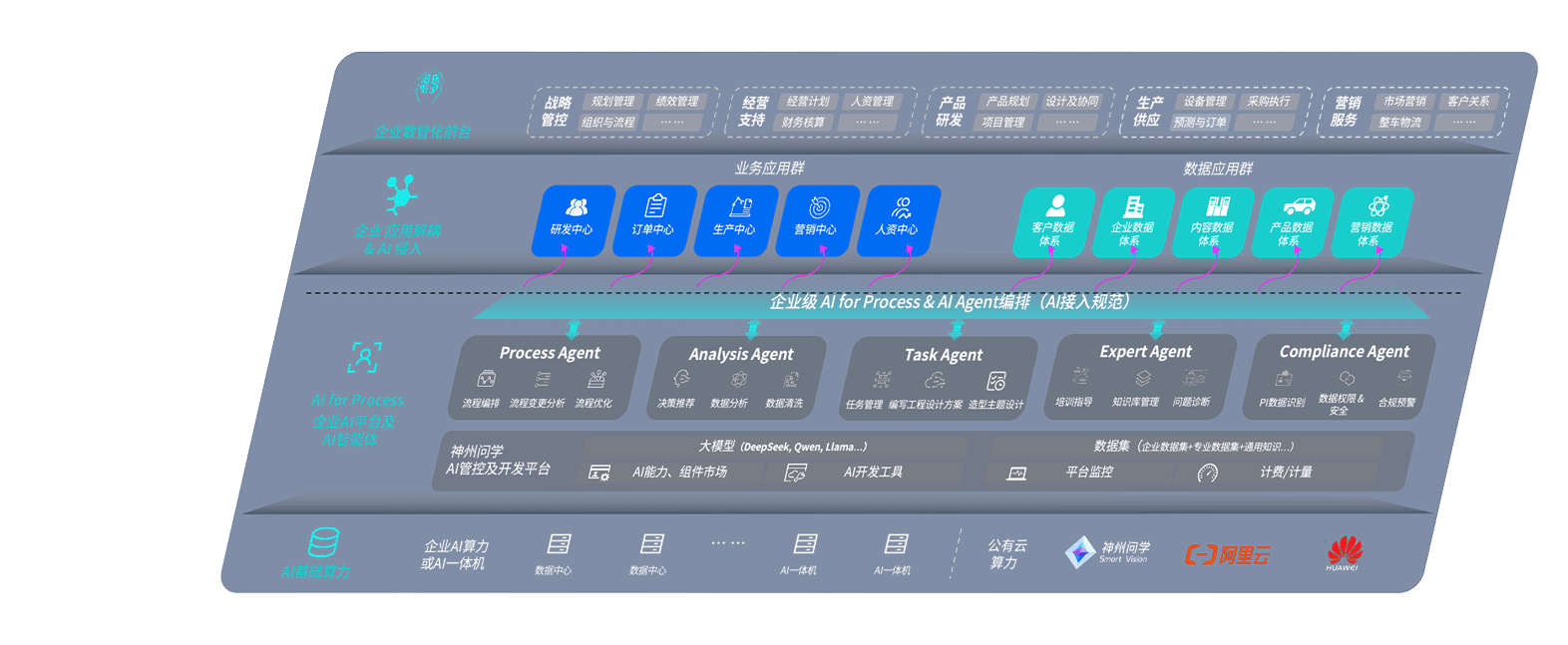端到端的一站式AI工作空间深度融合了从企业战略规划到日常经营的全流程业务板块,,定向解决车企内部领域多、、、、部门多、、链条长、、场景碎片化等难题,,,,支持车企快速构建以AI为核心的生产力写作体系,,,实现任务执行与AI能力的无缝集成与交互