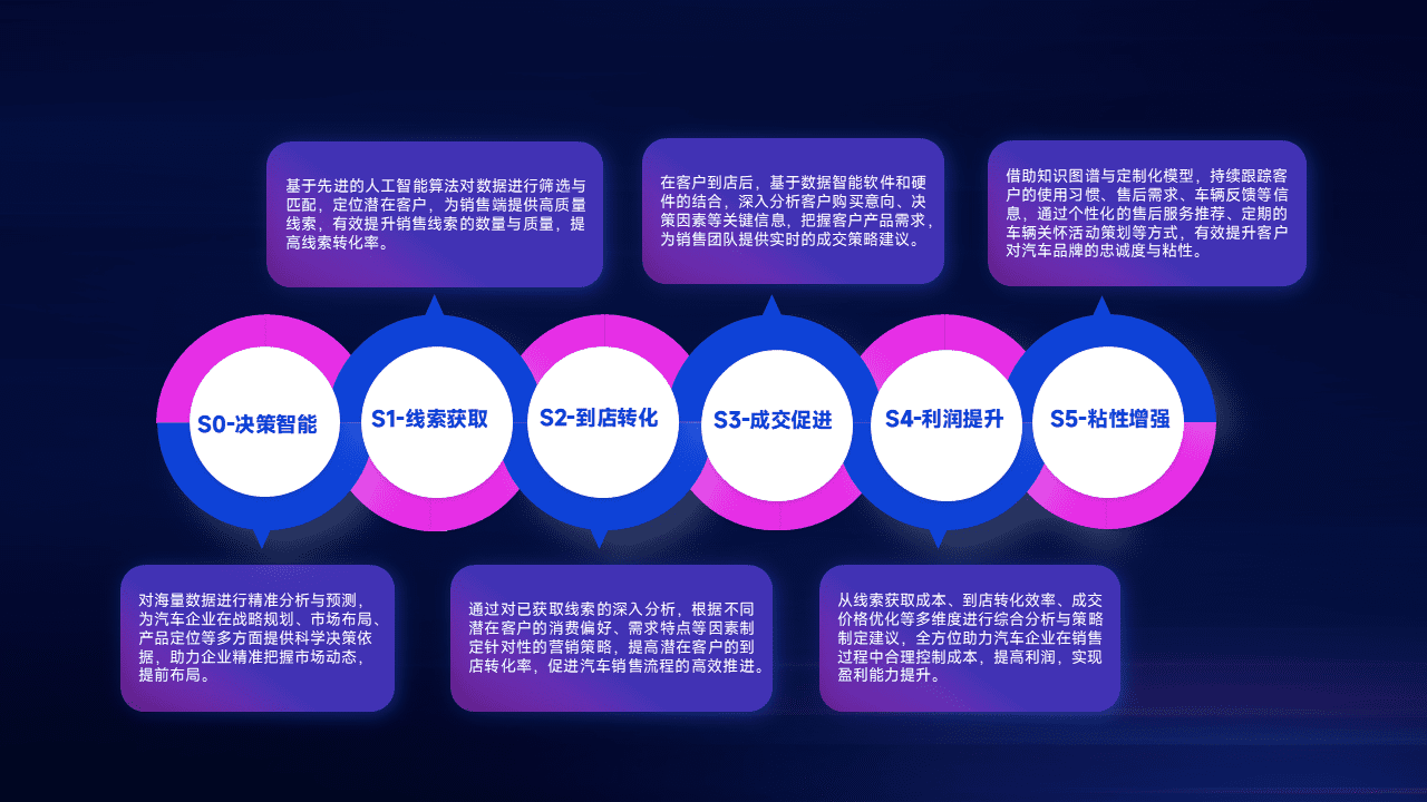 通过拓宽潜在客户来源、、、、优化线索分配并提高到店转化率,,,,以增强销售效率。。同时,,,,利用线索数据不断优化分析模型,,有效提升转化率,,,,扩大营销影响力。。。